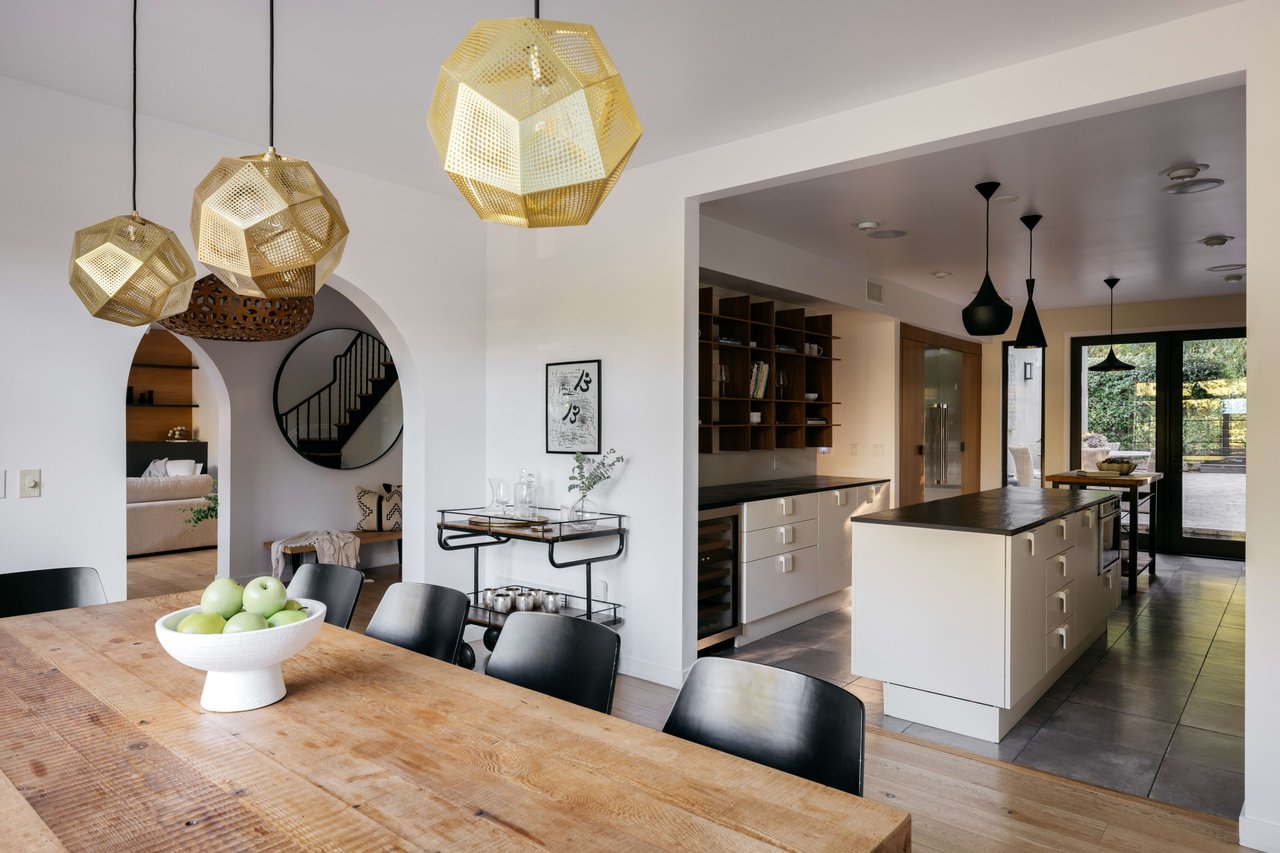 Bright and airy designer-done reimagined Spanish, circa 1924. Curved archways and modern, clean lines dominate a very practical floor plan, with a fabulous cook’s kitchen featuring Alta Italian cabinetry, Thermador/Viking appliances, and a black quartz center island. The Main level offers lovely indoor/outdoor flow from a formal Living Room, Den, separate Office and one of five bedrooms. Upstairs are 4 en-suite bedrooms including a generous Primary with city vistas and calming garden views. The grounds are reminiscent of a Tuscan villa, with olive and citrus trees, an alfresco dining area, and a refreshing black-bottom pool. This private oasis artfully blends style and practicality in an ideal Los Feliz location.